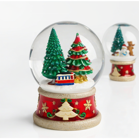 Navidad vacaciones globo de nieve resina árbol de Navidad estatuilla globo de nieve personalizado